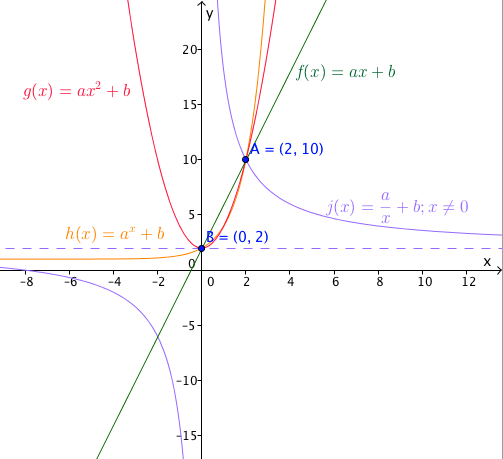 THINK: Are the equations unique? Are there other functions (linear, quadratic, etc) that will contain points A and B?