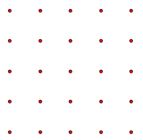 How many squares with whole number areas can you form on this 5 x 5 dot array with the dots for corners?